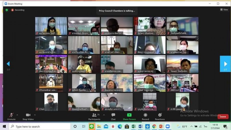 ๗ ก.ค ๖๔...พลเอกไพบูลย์ คุ้มฉายา องคมนตรี ประชุมออนไลน์ร่วมกับอาสาสมัครประจำพื้นที่และผู้อำนวยการโรงเรียนโครงการกองทุนการศึกษาและโรงเรียนเครือข่ายพร้อมผู้มีส่วนเกี่ยวข้องทุกฝ่ายใน จ.กาญจนบุรี,จ.สุพรรณบุรีและจ.อุทัยธานี