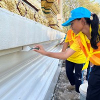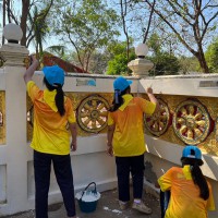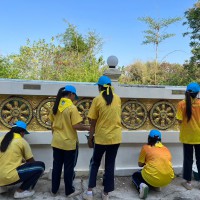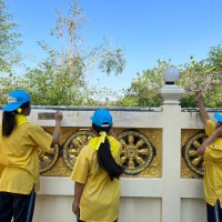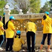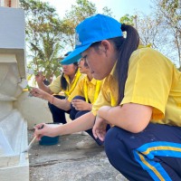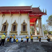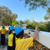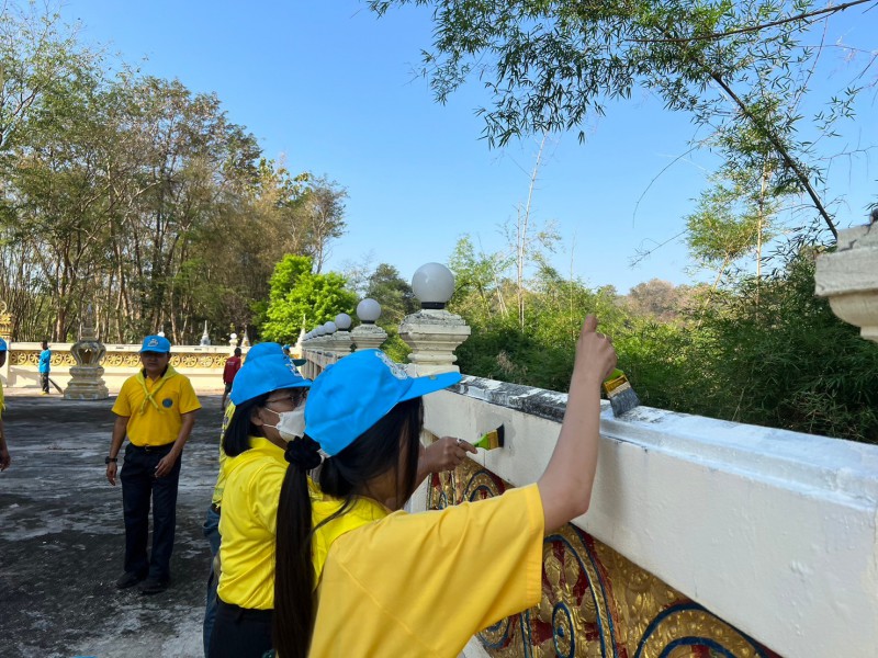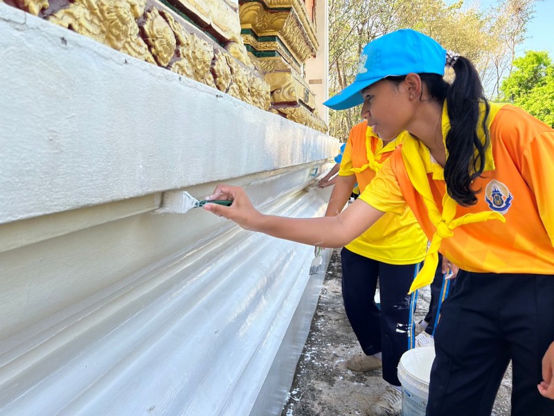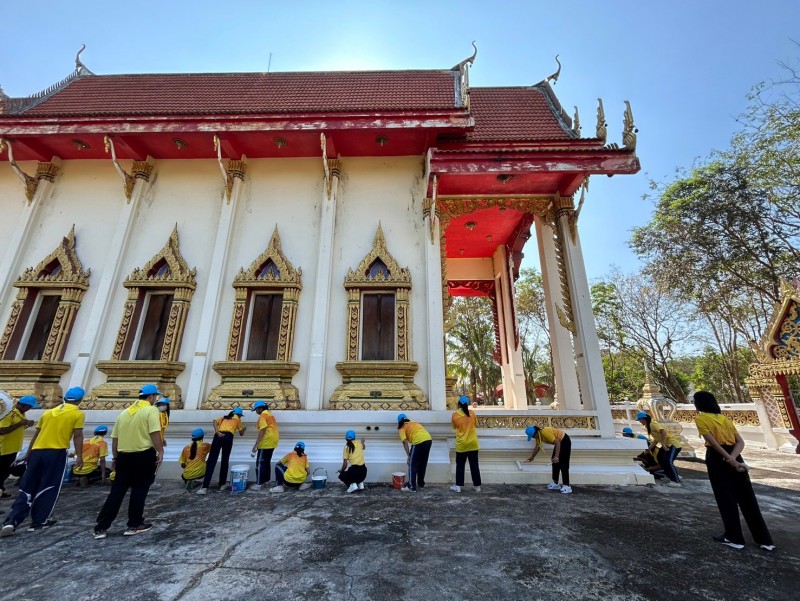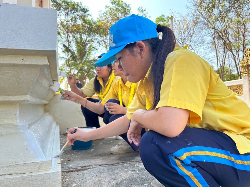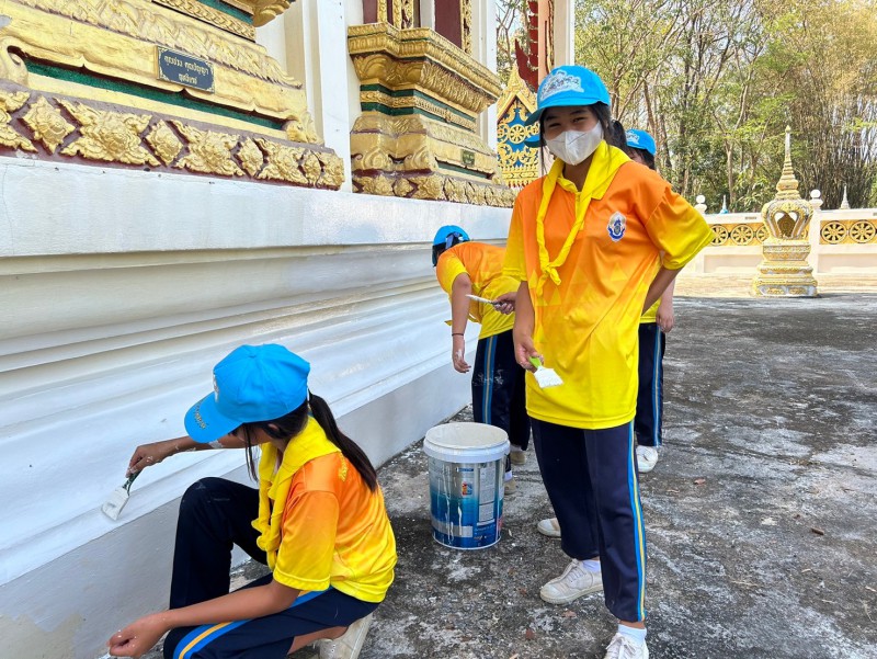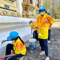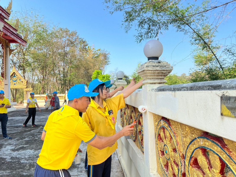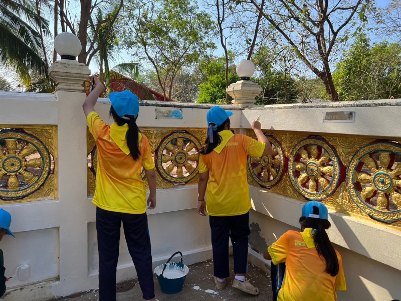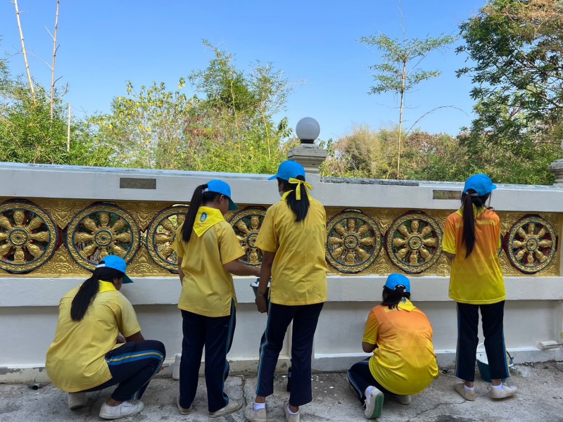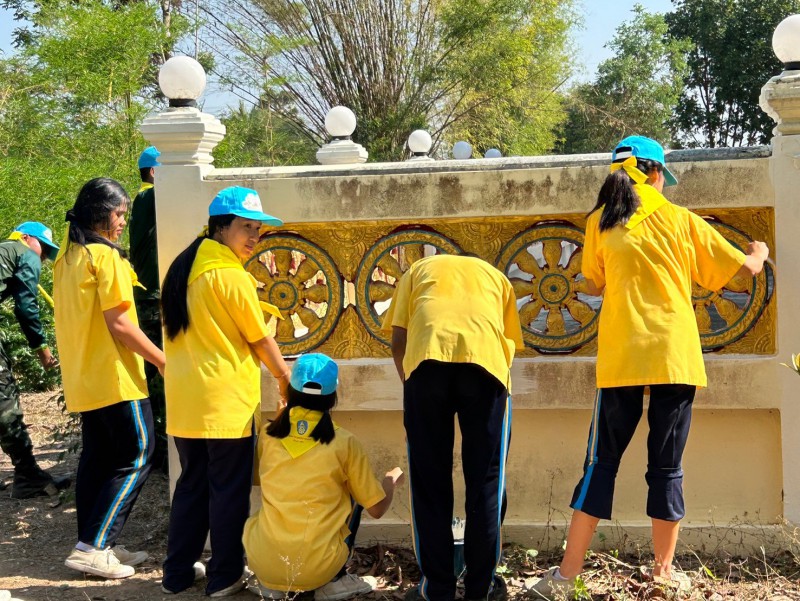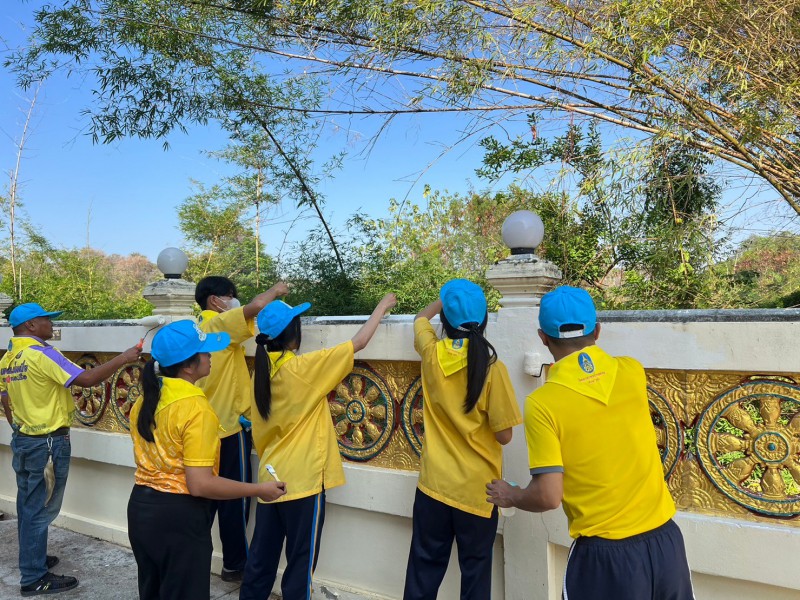 คณะครูและนักเรียนร่วมกับจิตอาสาพระราชทาน อำเภอหนองปรือ จังหวัดกาญจนบุรี พัฒนาวัดทาสีกำแพงแก้วอุโบสถวัดห้วยหวาย
